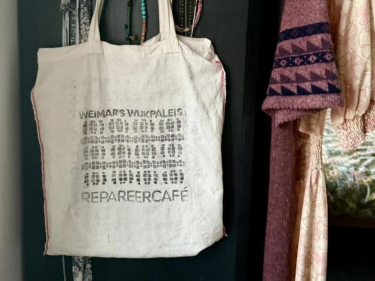 Op 20 juni, tijdens Weimar’s Zomerfestival, zijn de tassen weer terug in de wijk — als unieke limited editie. Misschien herken je je eigen tas. Misschien neem je die van iemand anders mee naar huis. Zo maken we samen nieuws van wat er is. Elke tas draagt een verhaal, en daar komt het verhaal van Weimar’s Wijkpaleis bij.